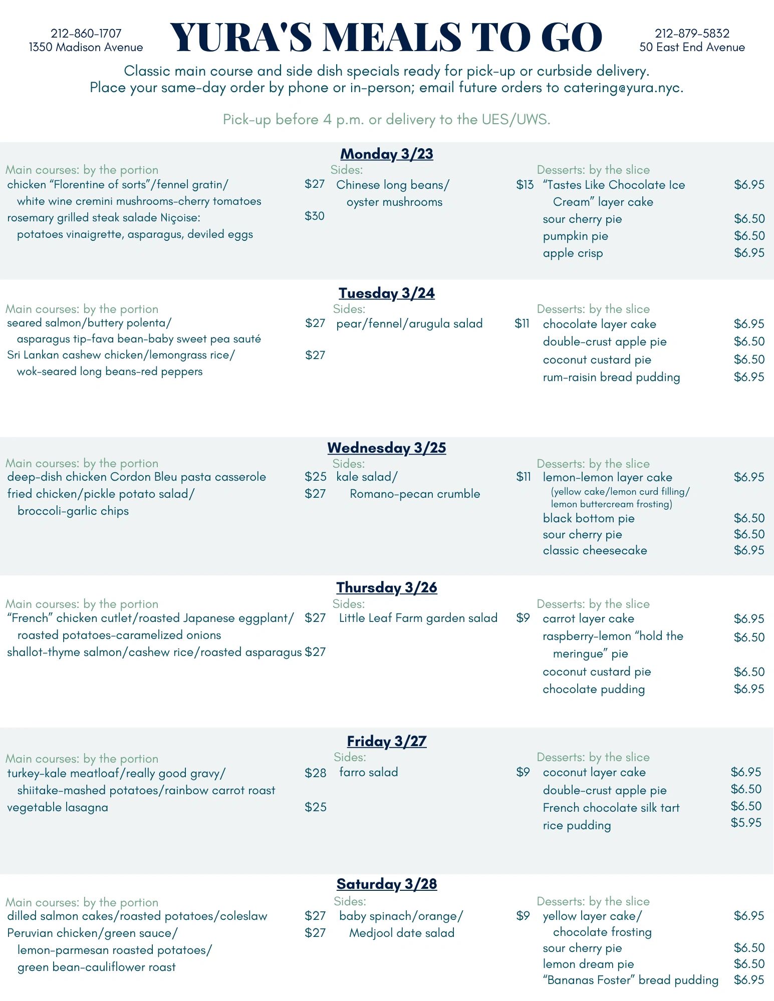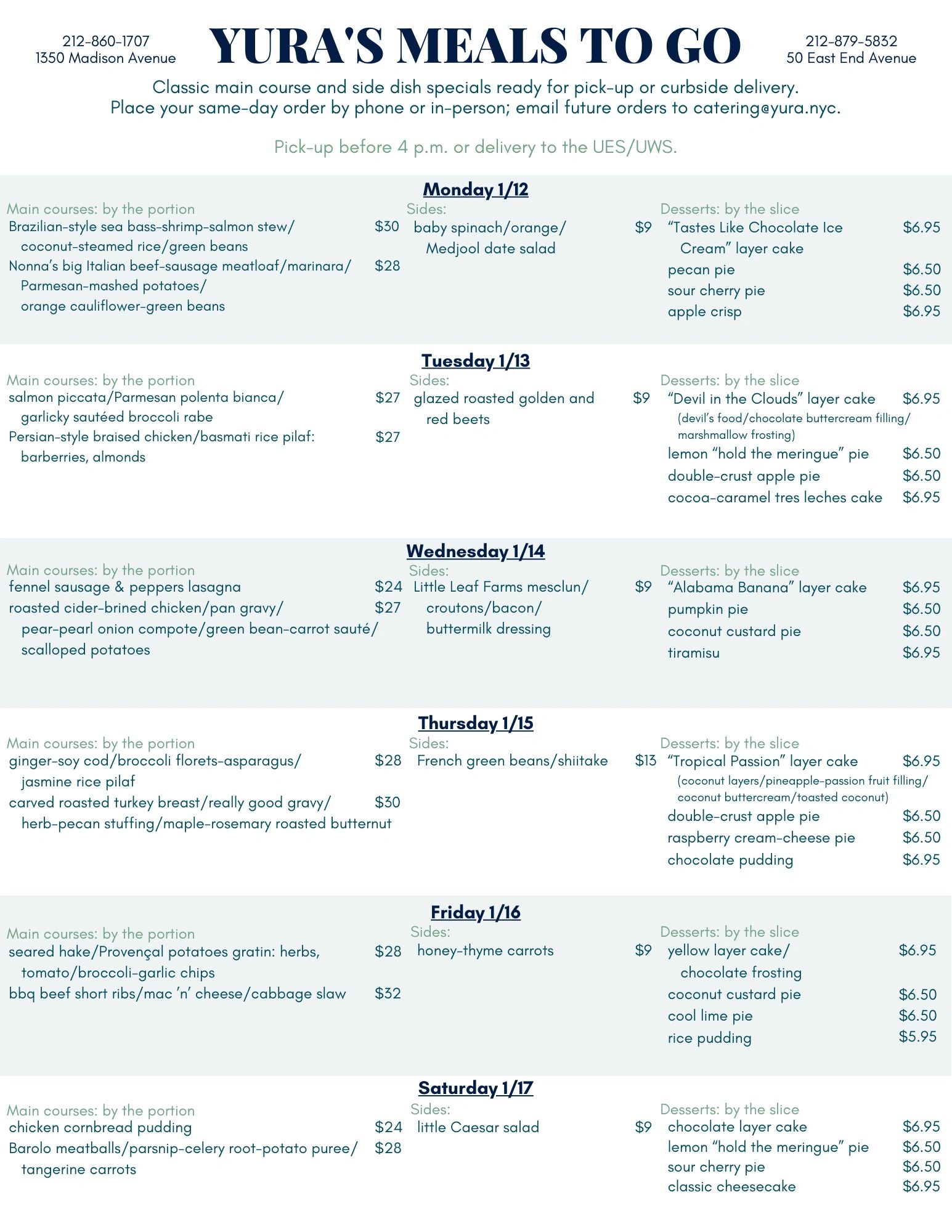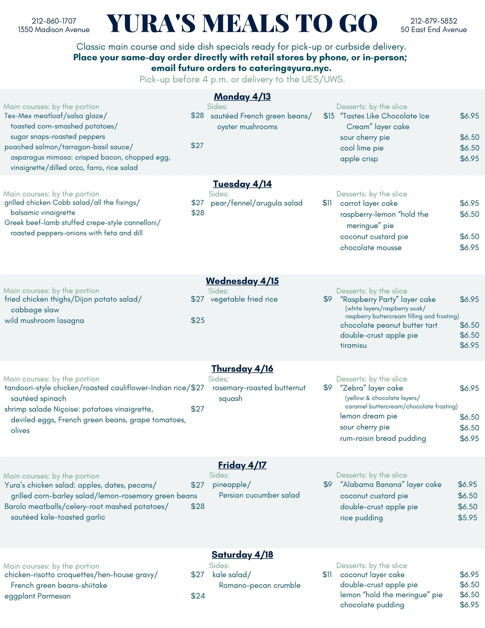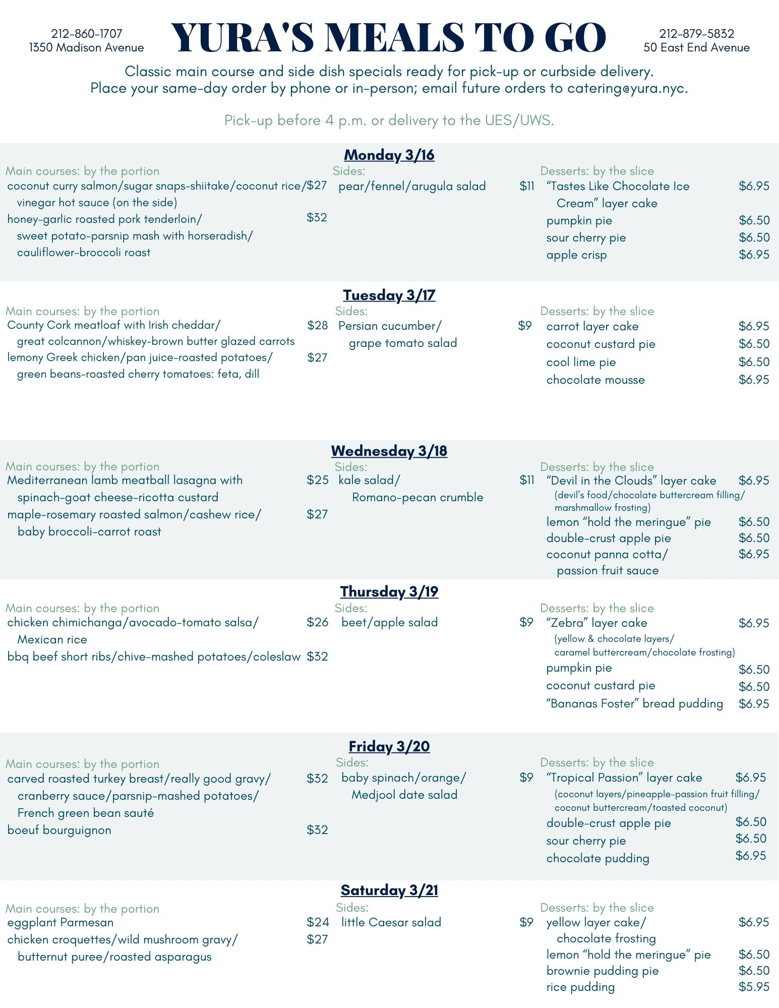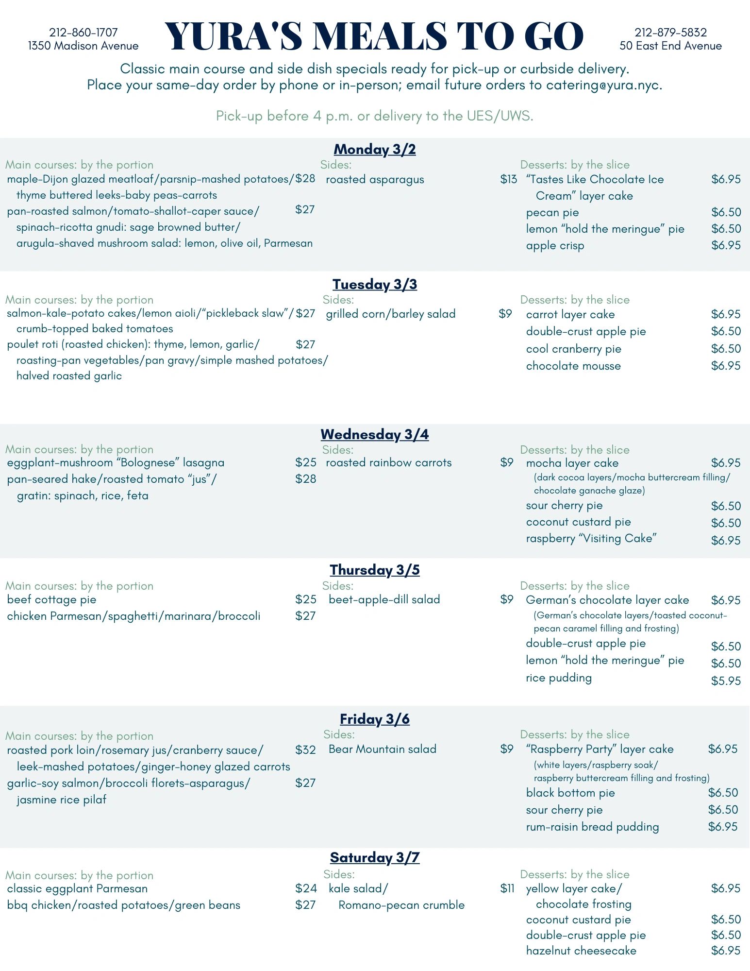 Click here to view the MTG menu in printable form. (pdf)